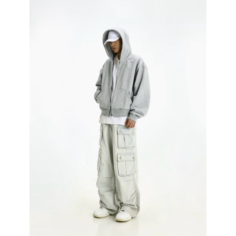 Spring & Fall Cleanfit Gray Hooded Sweatshirt Men and Women American Retro Casual Boxy Short Loose Coat Hoodie