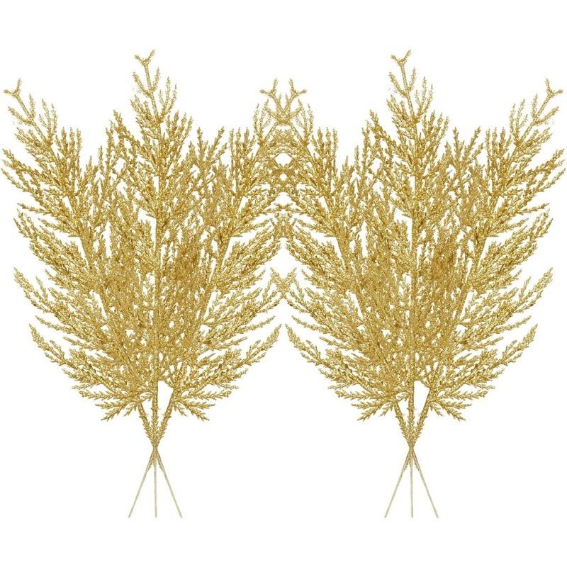 5 шт. Рождественские искусственные сосновые ветки с листьями, золотые, имитация растений, блестящая гирлянда, украшение для рождественской елки, домашнее новогоднее украшение