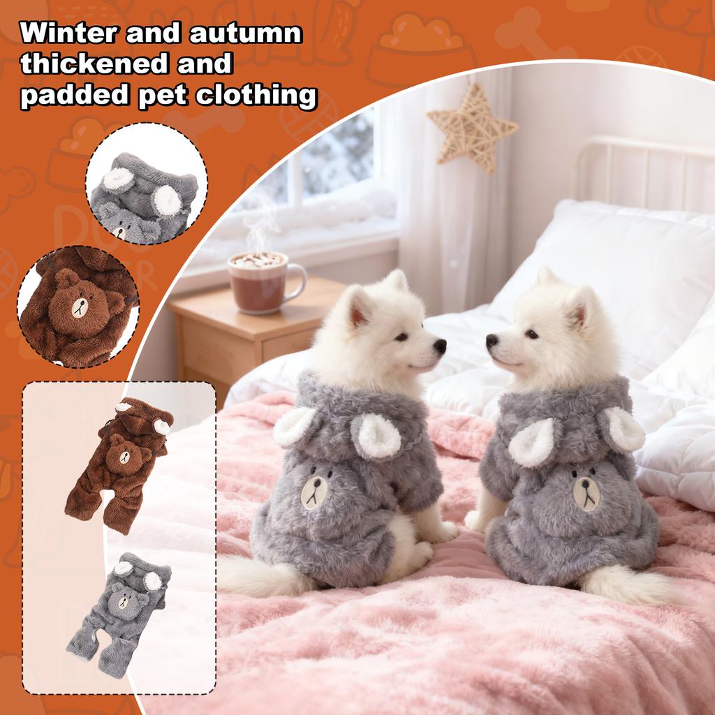 Одежда для домашних собак, на флисовой подкладке и утепленная для зимы, одежда на четырех лапах с капюшоном и принтом медведя для маленьких собак, таких как тедди и бишон, одежда для домашних животных