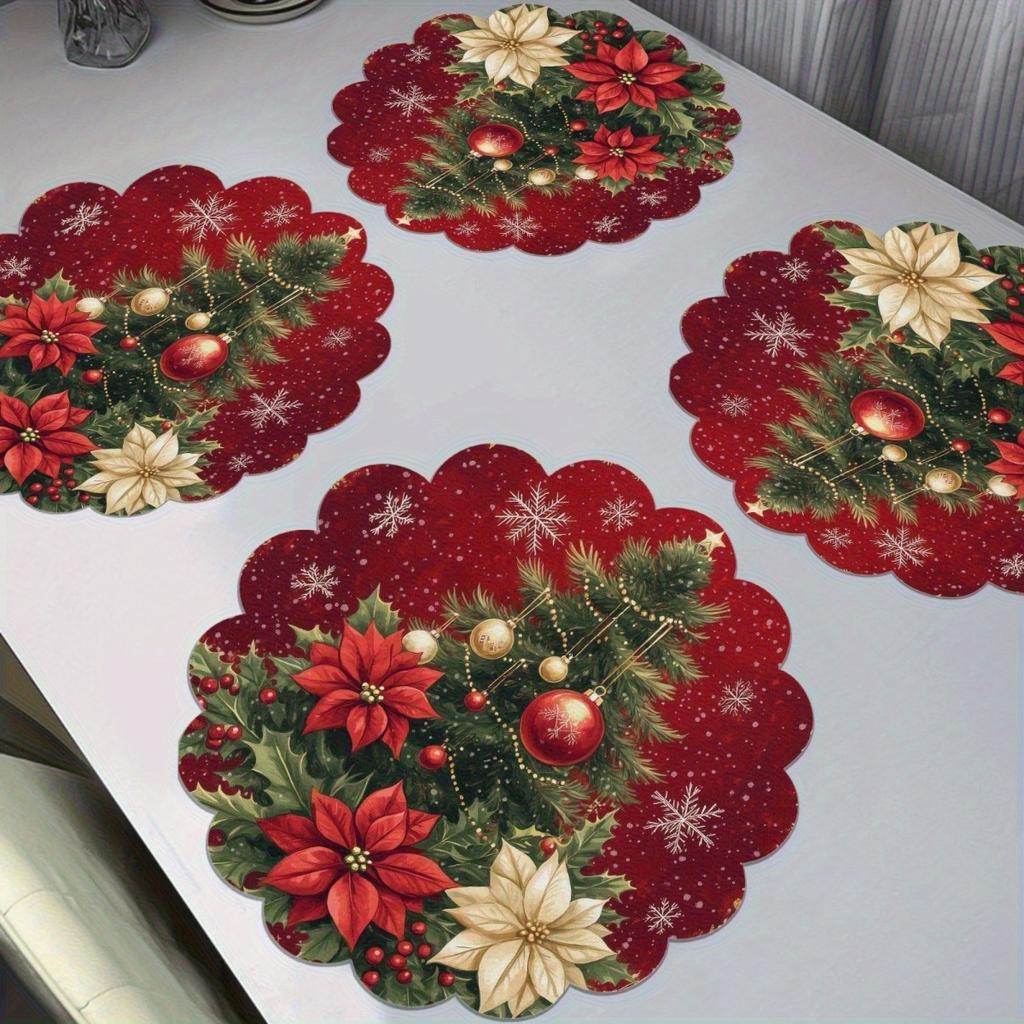 4 ШТ. Рождественские подставки под тарелки Прочные Термостойкие Нескользящие Новогодний праздник Свадебная вечеринка Украшение стола Дизайн с круговыми волнами