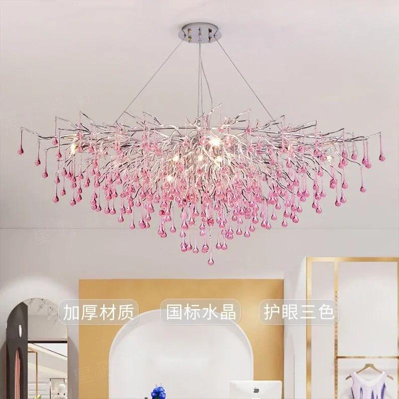 Горячие продажи Роскошная хромированная люстра - Дизайн 'Розовая хрустальная капля воды' для потолка гостиной, Элегантное внутреннее декоративное освещение