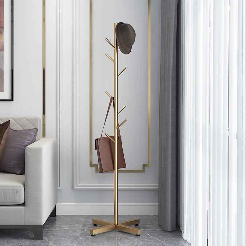Iron Floor Coat Rack with Marble Accent - Elegant Bedroom Furniture, Storage for Clothes, Caps & Accessories, Metal Shelf