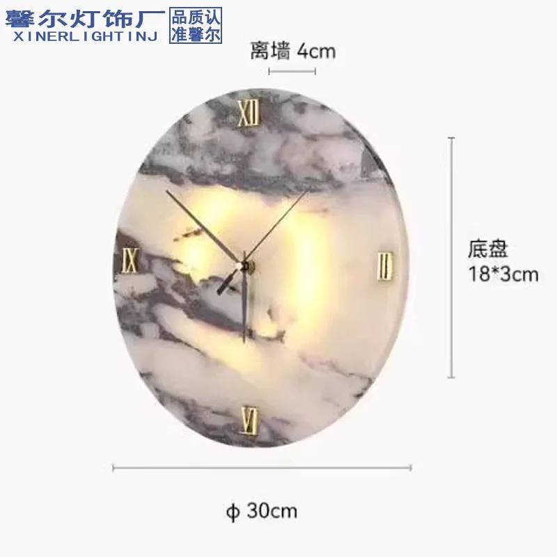 Круглые Роскошные Часы функция Натуральный Камень Алебастр Настенный Светильник Гостиная Мраморный Бра Декор Атмосфера Светодиодный Высококлассный Светодиодный Свет