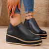 Женские ботинки на танкетке, женские ботильоны в стиле ретро, модные ботинки на платформе с круглым носком, удобные кожаные туфли на молнии для женщин на каблуке
