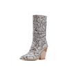 Белые Черные Коричневые Ковбойские Ботильоны из Искусственной Кожи для Женщин Ботильоны на Высоком Каблуке-Клинке Массивные Змеиный Принт Западные Ковбойские Ботильоны