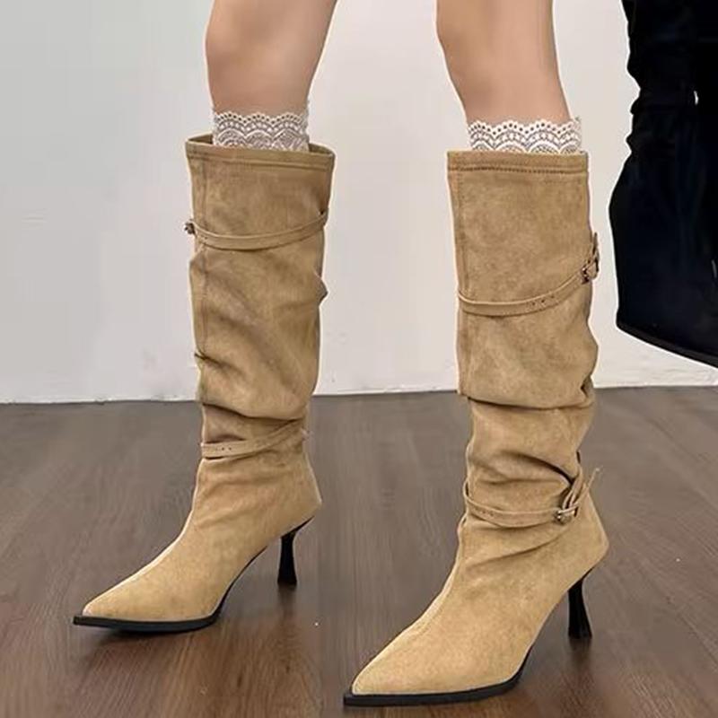 Женские ботильоны на высоком каблуке Сексуальные ботильоны на каблуке с острым носком Модные зимние замшевые ботильоны Челси Туфли-лодочки Новые Женские ботинки