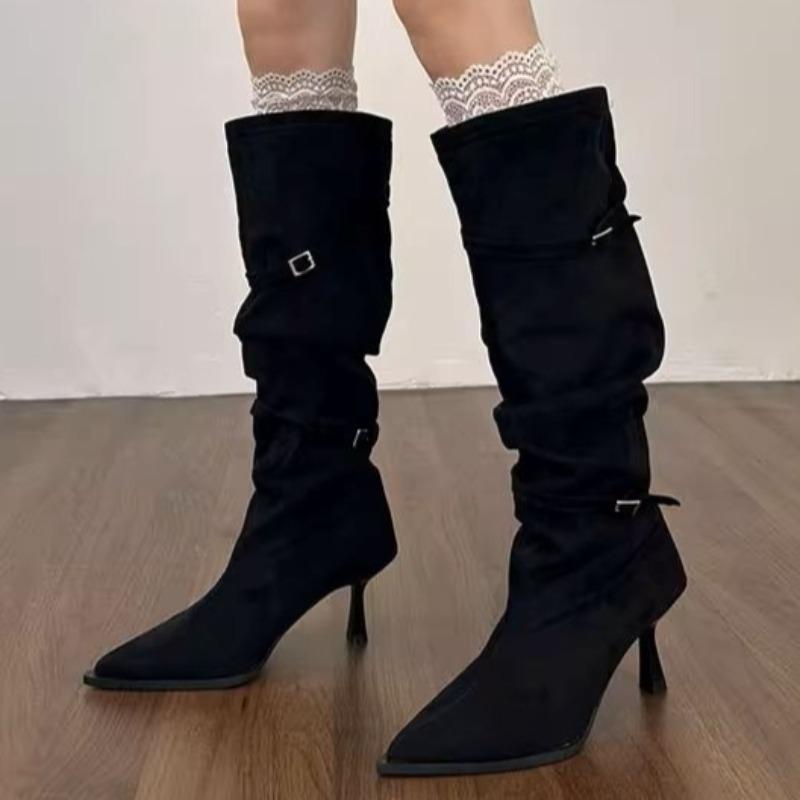 Suede Women Pointed Toe Knee High Boots Sexy High Heels Shoes Winter Pumps New Goth Fashion Heeled Chelsea Botas Mujer