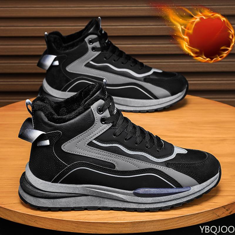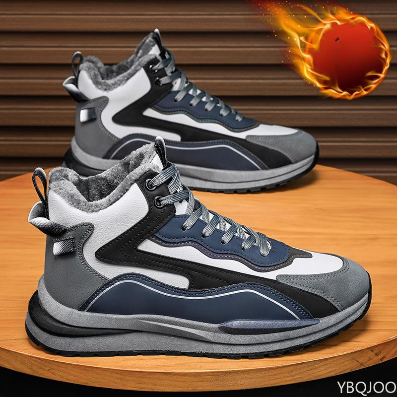 Новые мужские высокие теплые кроссовки на толстой подошве с плюшем, универсальные спортивные мужские повседневные парусиновые кеды в стиле колорблок