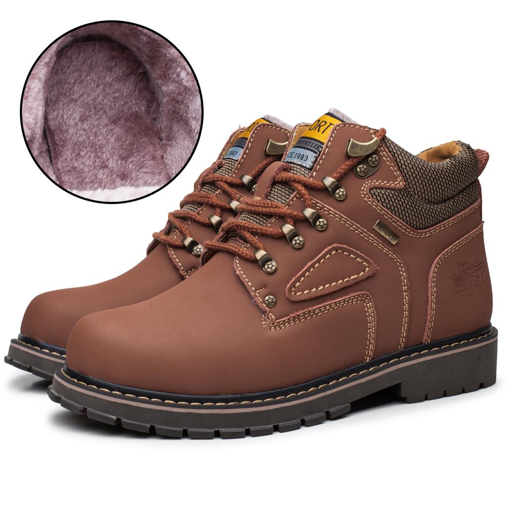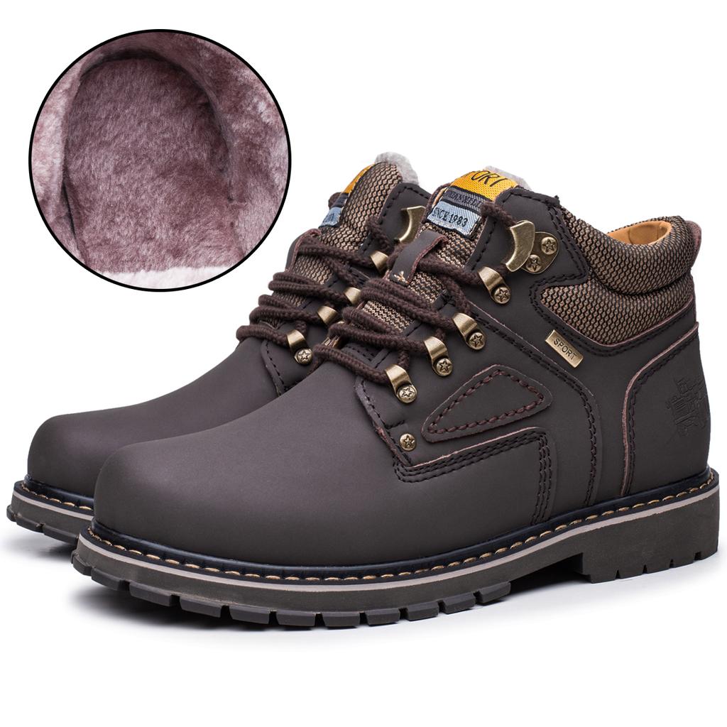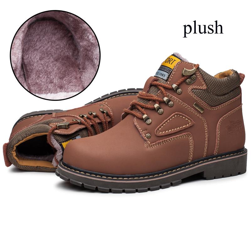 Зимние мужские ботинки до щиколотки, рабочие ботинки, кожаные ботинки для работы на открытом воздухе, плюшевые теплые рабочие ботинки, мужские ботильоны