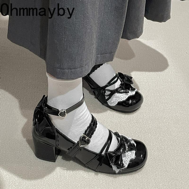 Ballet Style Thick Heel Women Lolita Mary Jane Shoes Fashion Butterfly-knot Outdoor Women's Party Dress Pumps