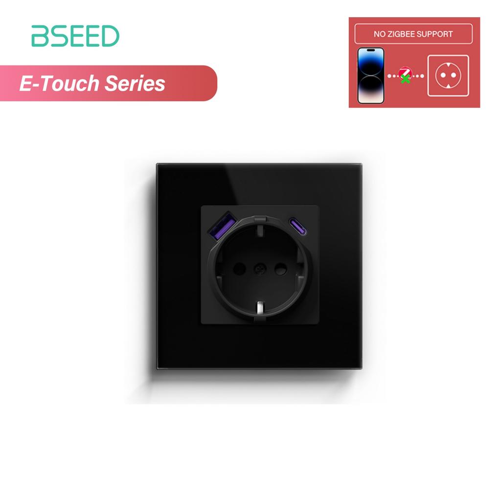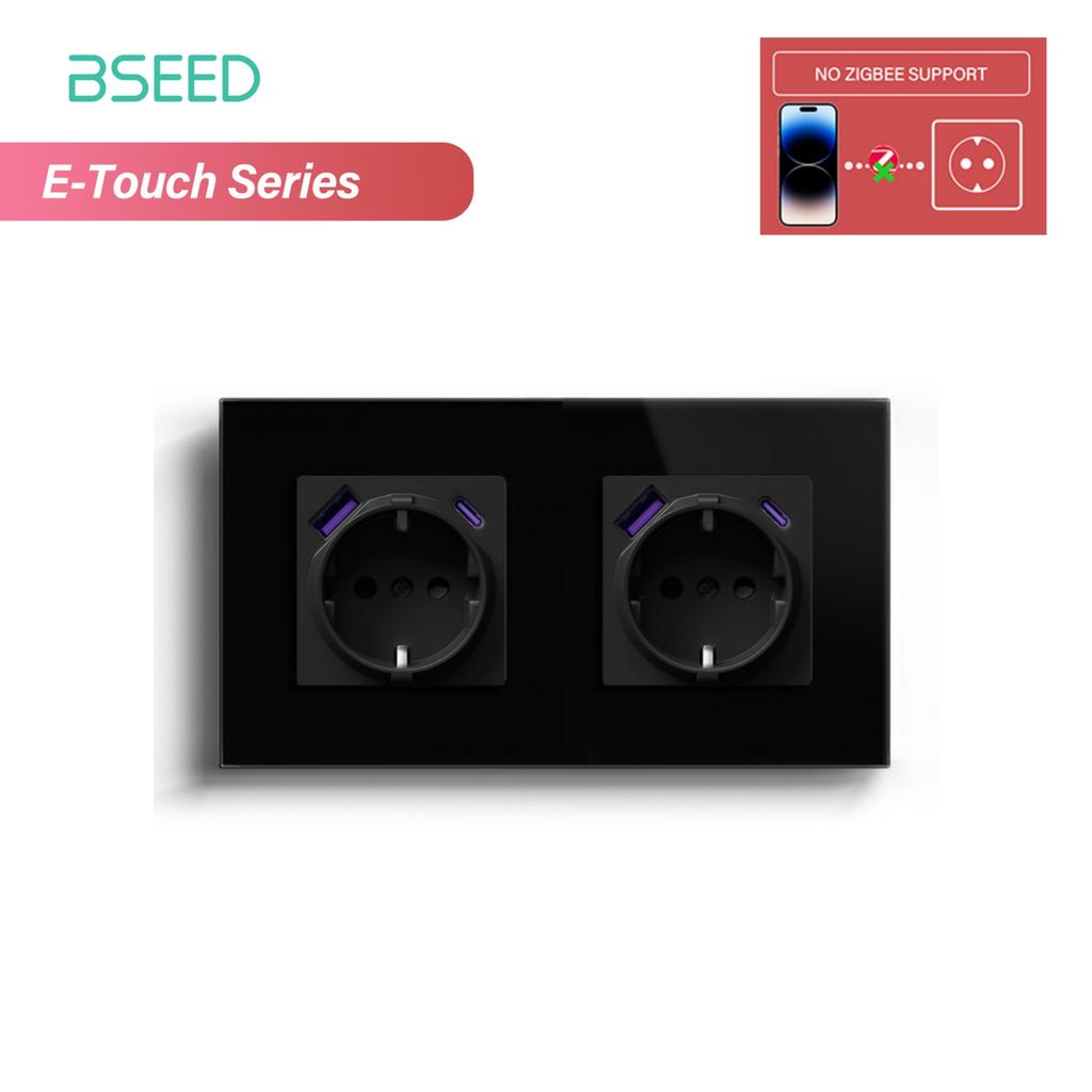 BSEED 1/2/3/4-клавишный сенсорный выключатель Zigbee, стекло с USB-C, EU розетки 20 Вт, умный настенный выключатель, сенсорный экран, подсветка, серия E
