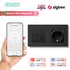 BSEED Zigbee Shutter Switch With Wall Sockets Wall Smart Click Switches Yellow Backlight Plastic Frame Tuya APP Roller Switch EU