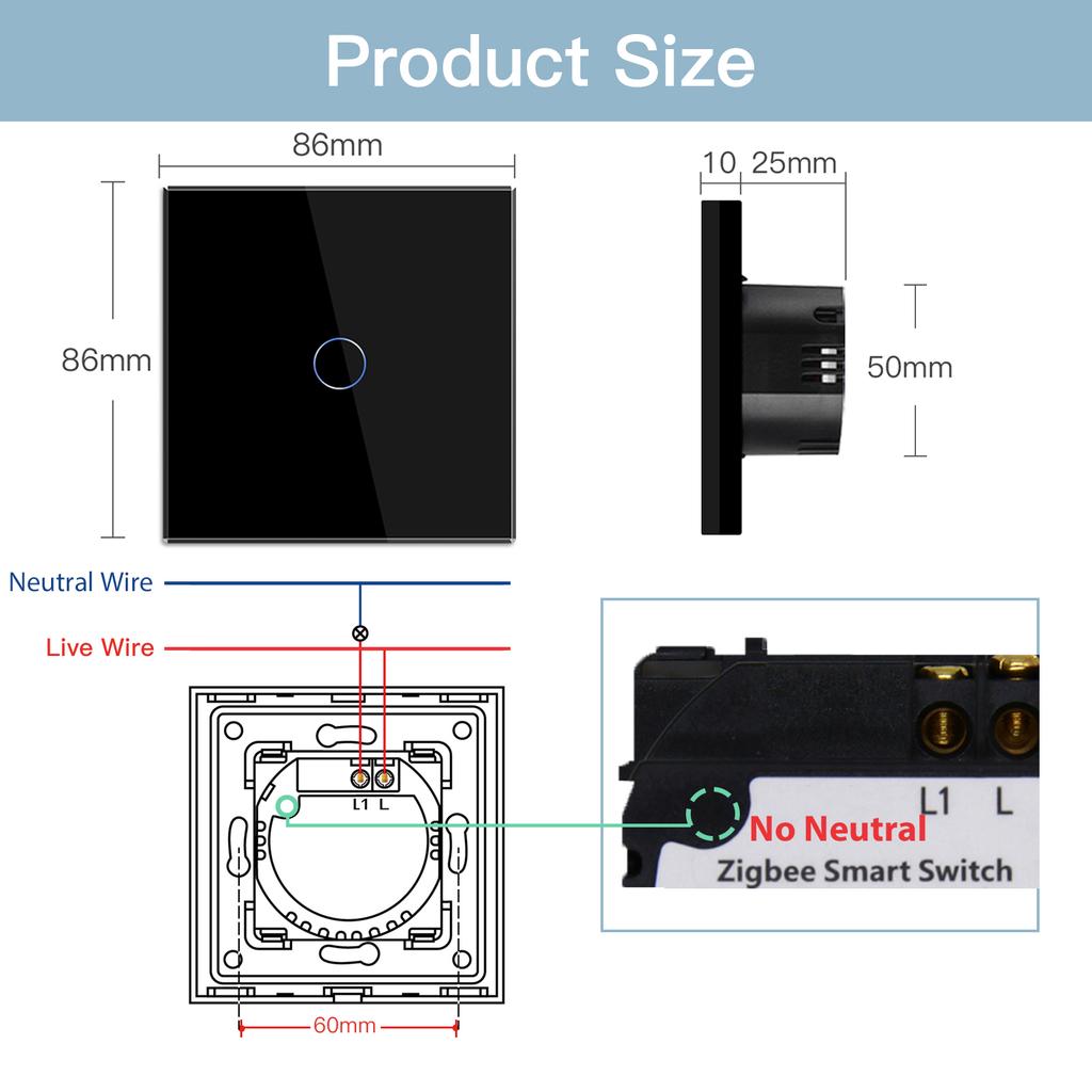 BSEED Zigbee 1/2/3 Gang 1 Way Smart Switch Single Live LED Buttons Glass Panel Work With Google Home EU Touch Switch Smart Life