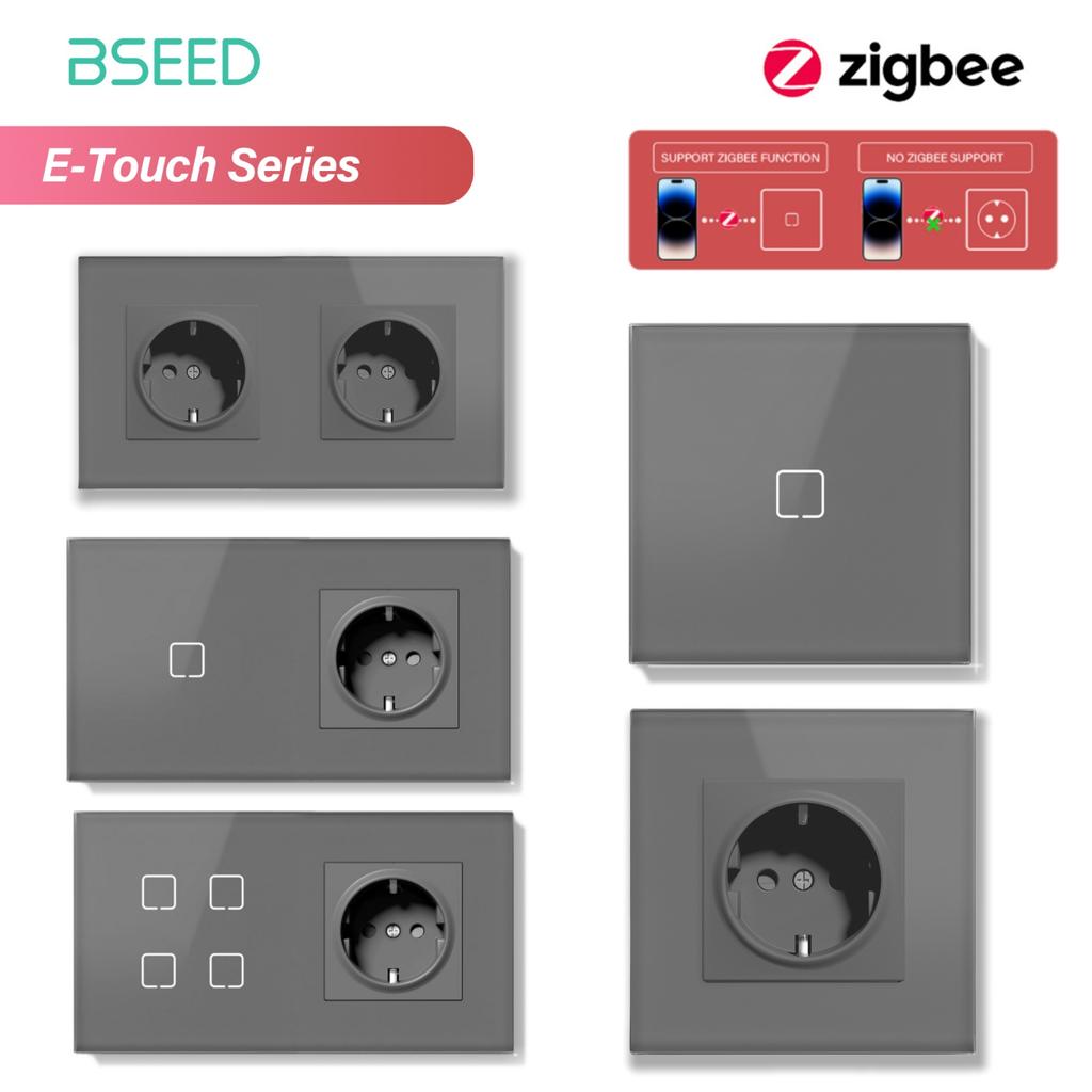 BSEED 1/2/3/4-клавишный сенсорный выключатель Zigbee, стекло с розетками EU, умный настенный выключатель света, сенсорный экран, подсветка, серия E — купить товар онлайн с бесплатной доставкой по всему миру!