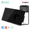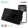 Bseed New Zigbee Single Live 1/2/3 Gang Touch Switch EU Standard With Normal Socket 4 Color Crystal Glass Panel Smart Home