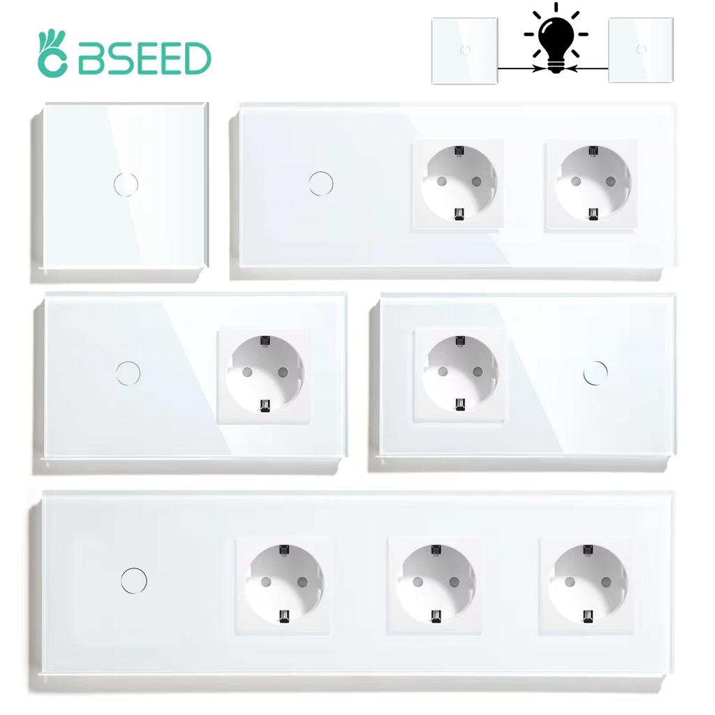 BSEED 1/2/3-клавишный сенсорный выключатель света 1/2/3-сторонний сенсорный выключатель для лестницы плюс настенная розетка, стандарт ЕС, стеклянная панель, синяя подсветка, 10А — купить товар онлайн с бесплатной доставкой по всему миру!