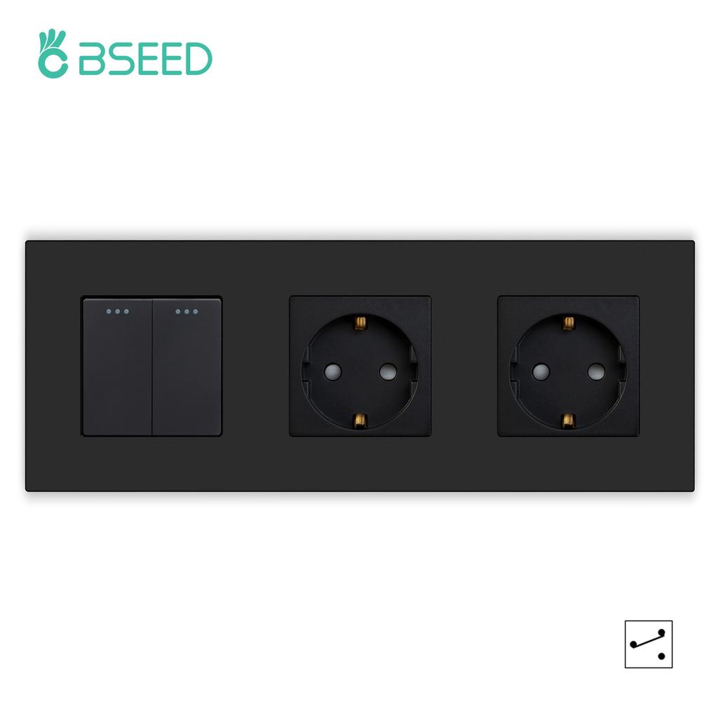 BSEED 1/2/3 Клавишные Механические Выключатели 2-сторонние Для Лестниц Плюс EU Розетки USB Type-c Порты Питания Матовые Пластиковые Рамки Черные