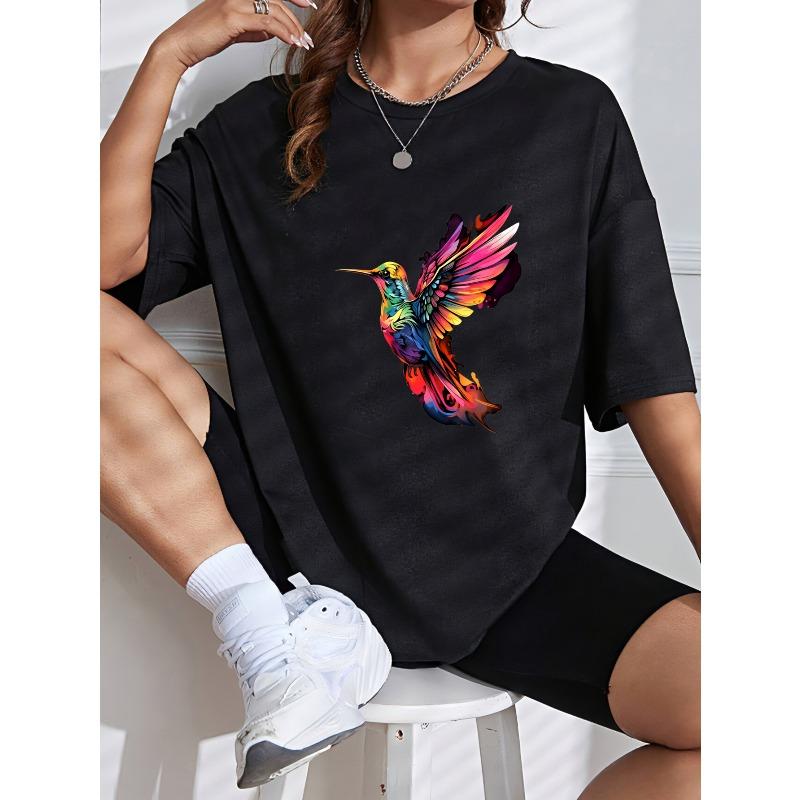 Женская повседневная футболка белая с красочным принтом колибри, летний модный топ для повседневной носки и прогулок