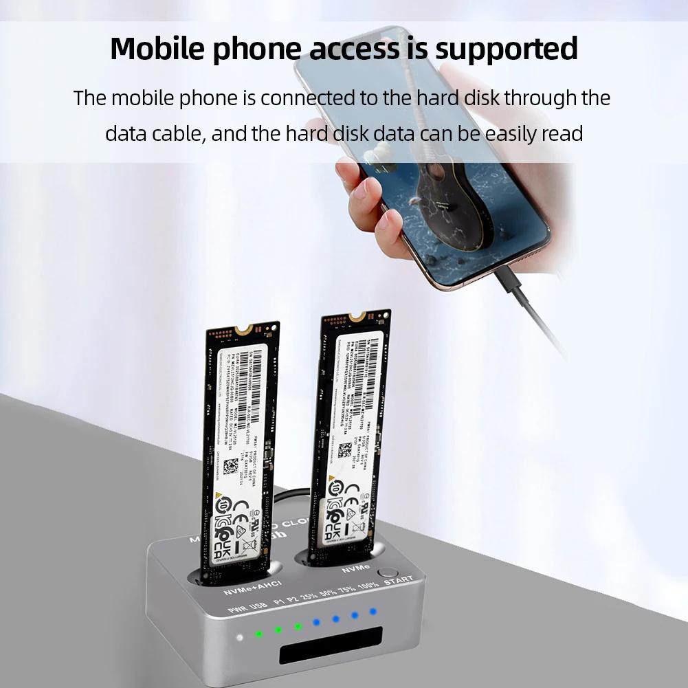 Док-станция NVME с двумя отсеками M.2 NVME SSD Clone 20 Гбит/с USB 3.2 Type C внешний жесткий диск State Drive Reader для M2 SSD M Key PC