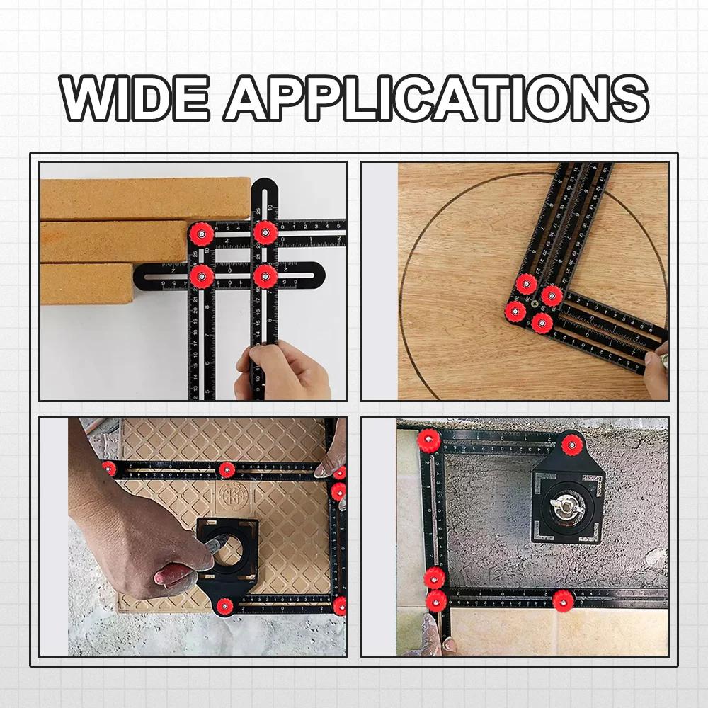 1 шт. Алюминиевый сплав Многоугольная измерительная линейка - Складной шаблон для сверления отверстий в плитке для деревообработки/строительства