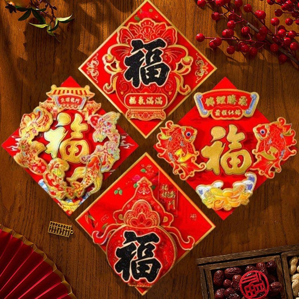 Блестящая наклейка на дверь Год Лошади в китайском стиле, наклейка на стену с иероглифом Фу, декор для дома, гостиной