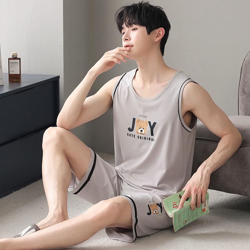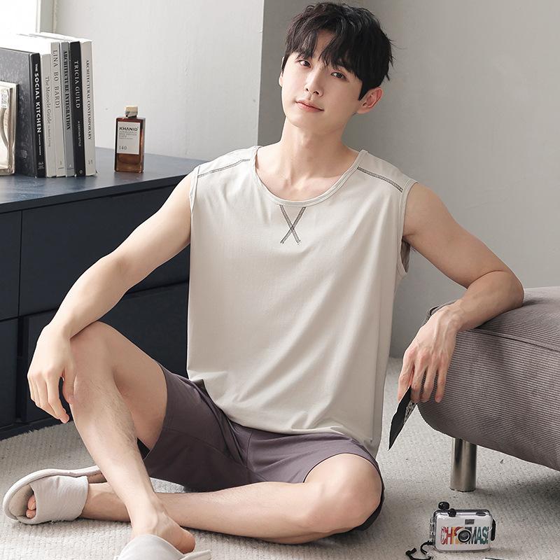 Летние модальные пижамные шорты без рукавов мужские пижамные комплекты мужской пижамный комплект для мужчин одежда для сна костюм домашняя одежда