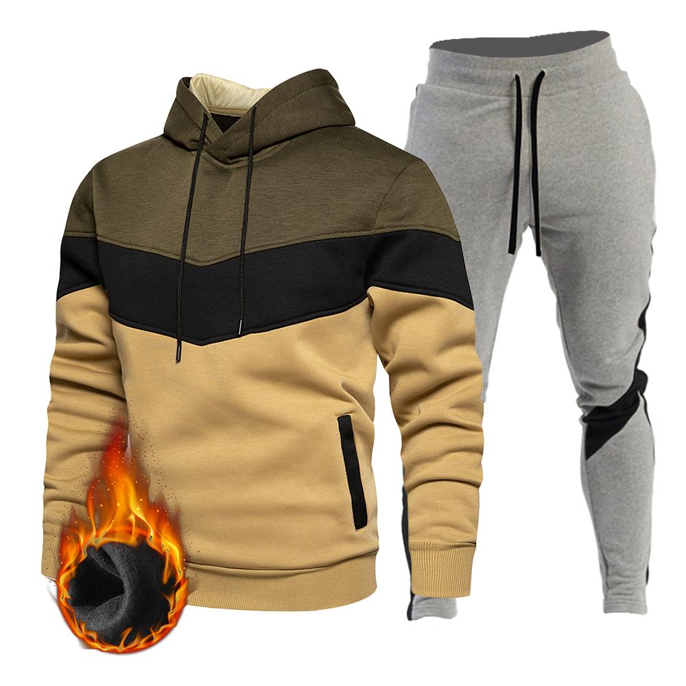 Пуловер с капюшоном, толстовка и брюки, комплект контрастного цвета с капюшоном, зимняя мужская спортивная одежда, спортивный комплект из 2 предметов, мужской комплект свитшотов для бега