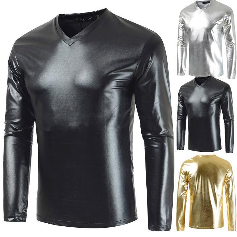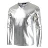 Мужская блестящая однотонная футболка с длинным рукавом и V-образным вырезом — купить товар онлайн с бесплатной доставкой по всему миру!
