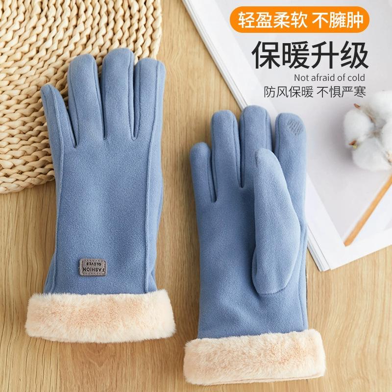 Женские зимние теплые перчатки, женские для езды на электромобиле, ветро- и холодозащитные, сенсорные из искусственной замши, студенческие утолщенные бархатные