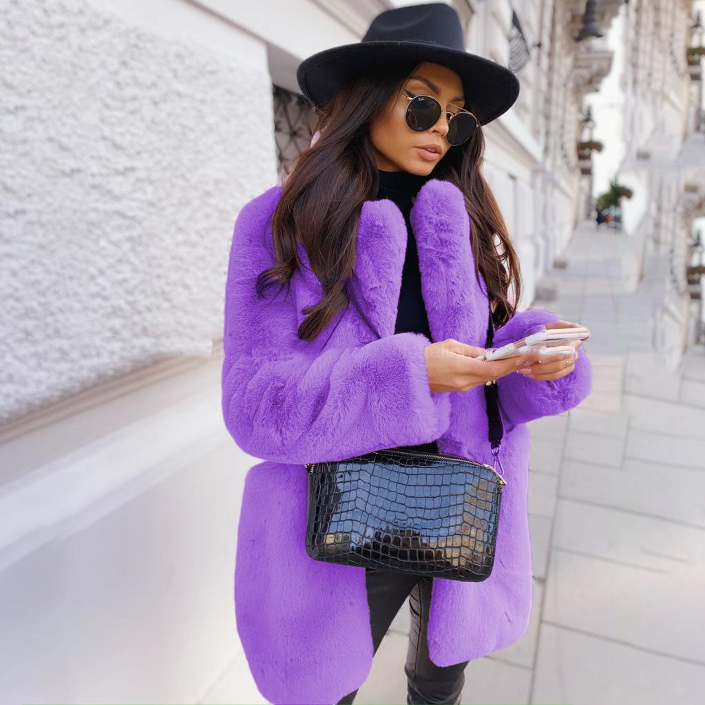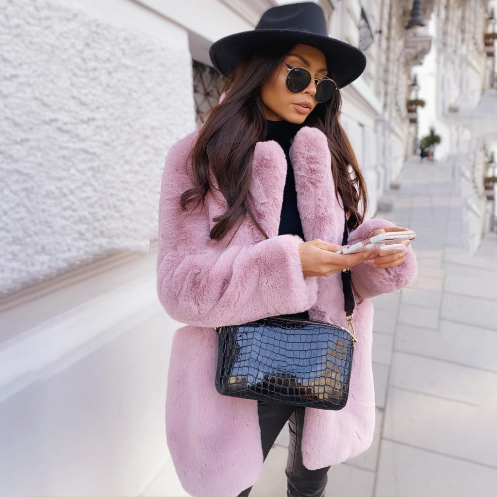 Женское зимнее теплое пальто из искусственного меха, толстое женское пальто средней длины, женское теплое пальто с отложным воротником
