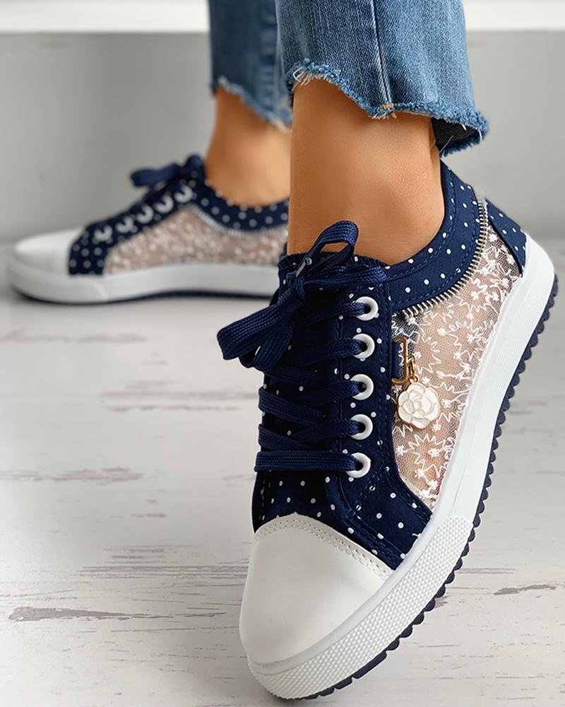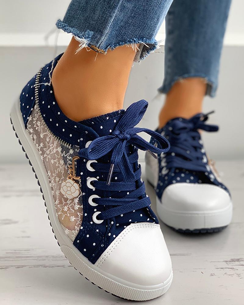 Туфли на плоской подошве с кружевом в горошек, женские повседневные туфли на шнуровке, для отдыха, сексуальные, сетчатые, удобные, женские туфли-лодочки на 2024 год