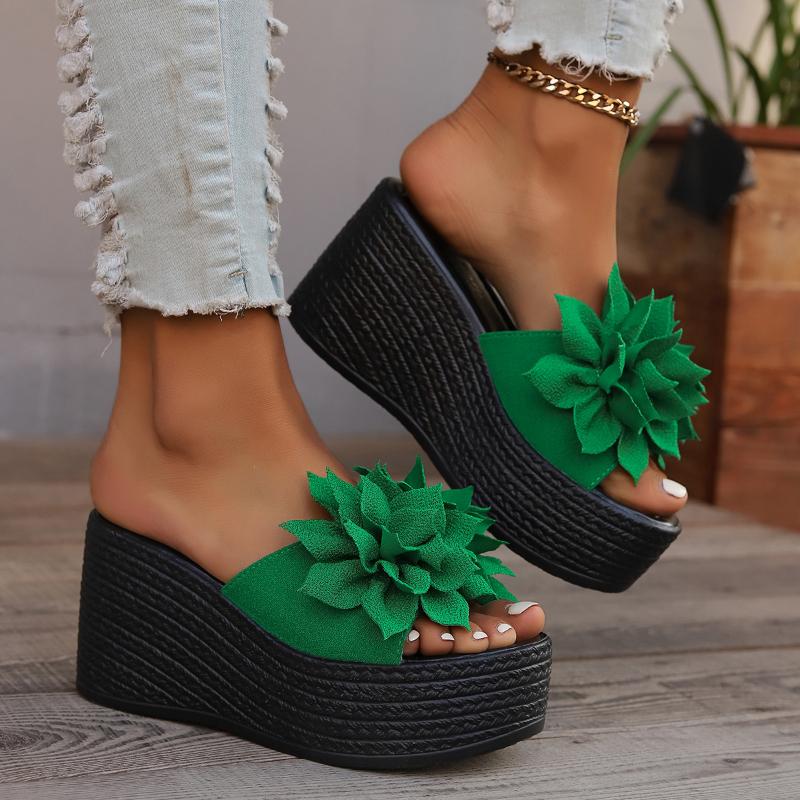 Женские тапочки на платформе 2024 года, новые летние пляжные босоножки на танкетке, модные повседневные тапочки с цветочным принтом, женские тапочки на высоком каблуке для женщин — купить товар онлайн с бесплатной доставкой по всему миру!