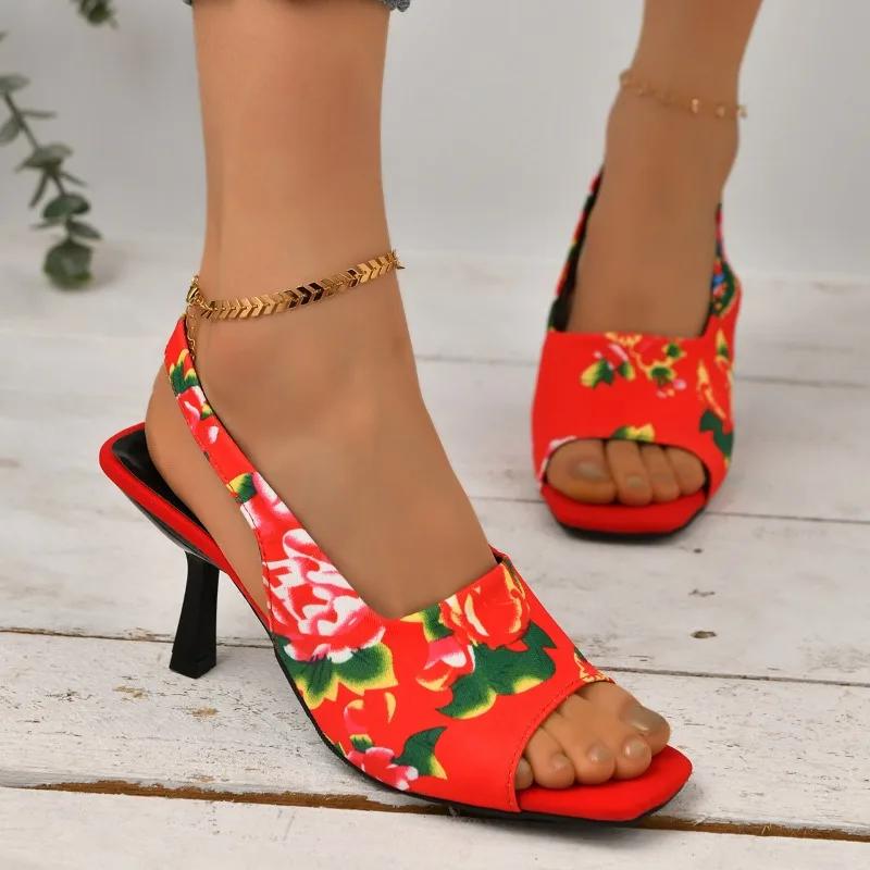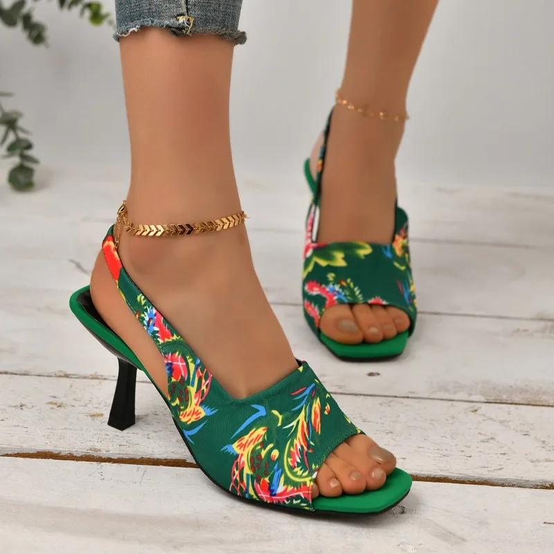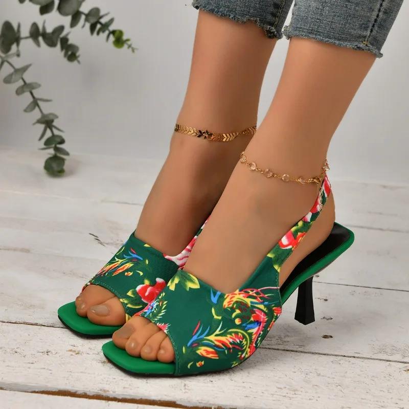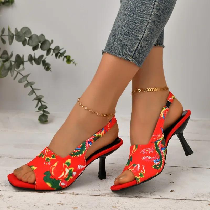 2024 Женская летняя новая модная дизайнерская женская обувь с принтом, повседневное удобное вечернее платье, женские туфли на высоком каблуке, большой размер