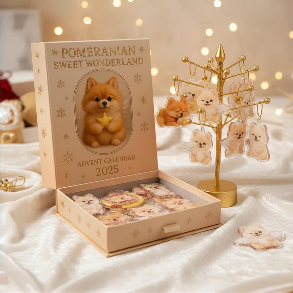 Померанский шпиц Адвент-календарь 2D акриловая кукла Рождественская атмосфера декор подарки Новый год 24 дня Рождественский обратный отсчет Календарь с сюрпризами
