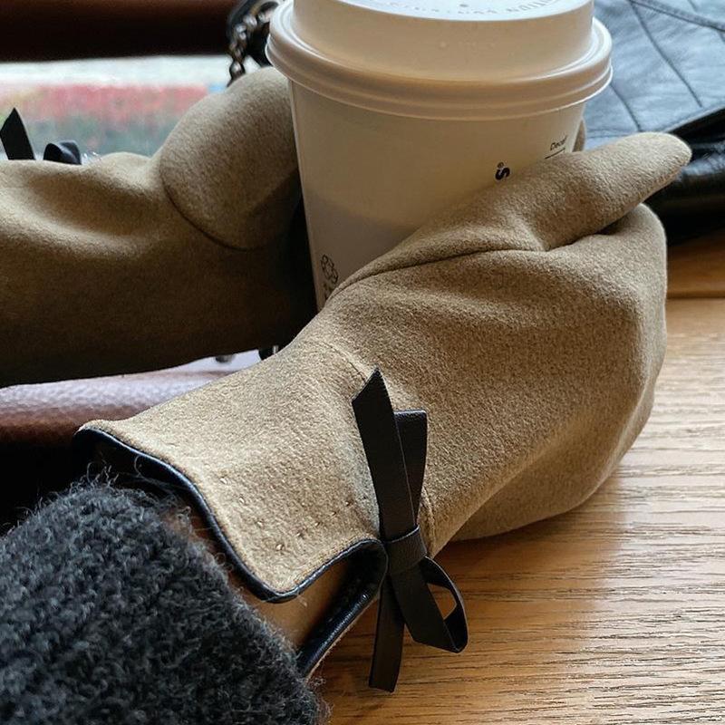 Перчатки зимние женские корейская версия милый бант бархатные утолщенные осенние для езды на электромобиле защита от холода теплые сенсорные оптом
