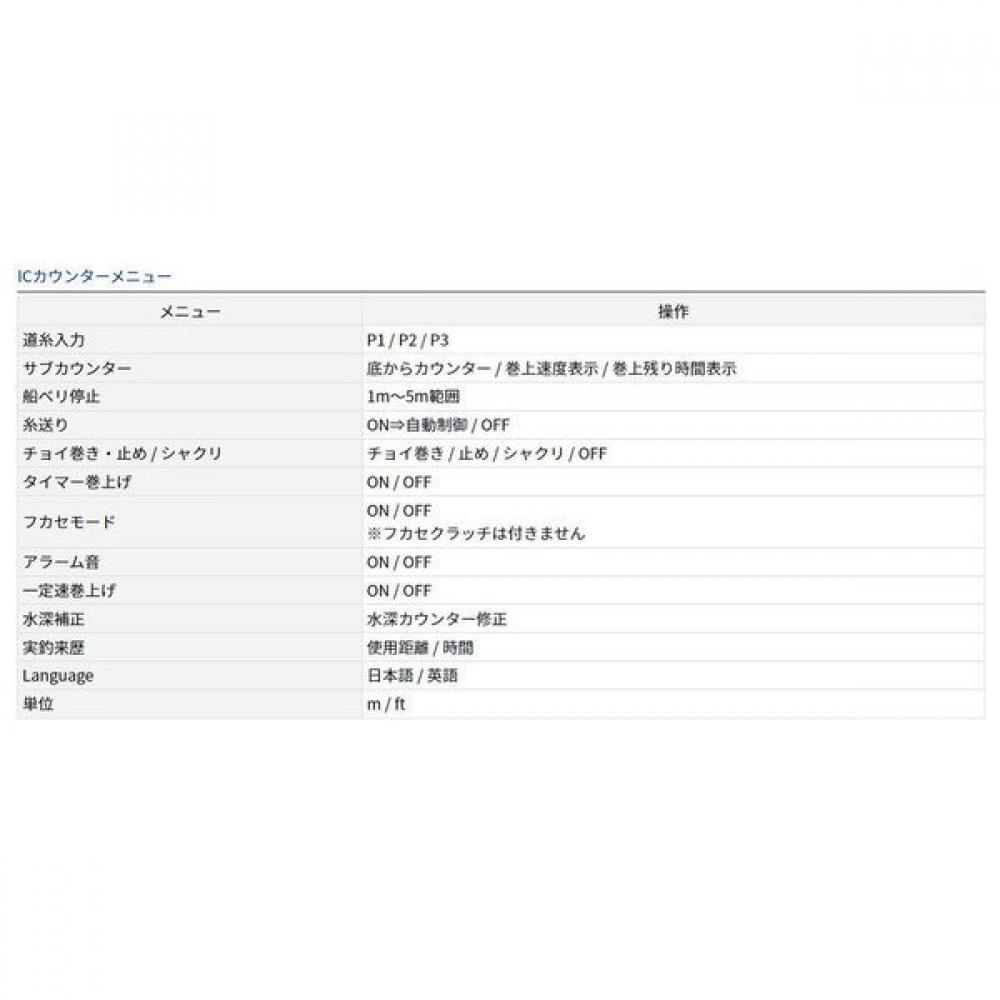 The Daiwa 23 LEOBRITZ (Leobritz) 300JL (left) is an electric reel featuring a lightweight and compact design. It weighs 540g, and its low-profile body provides high power and speed even in small spaces. With a maximum drag strength of 13kg, it's designed with the ATD system for quick and smooth operation. It includes a jog power lever for convenient operation and a fall brake dial for instant speed setting, with a dot LCD counter for visual convenience.