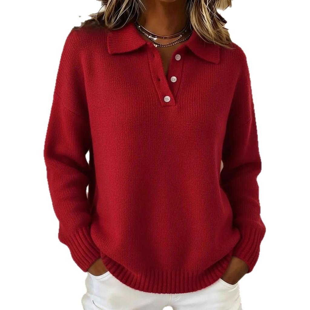 Красный трикотажный свитер с длинным рукавом и воротником поло