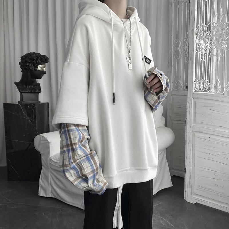 Женская винтажная уличная толстовка с капюшоном, негабаритная толстовка в стиле панк с длинными рукавами, пуловеры с капюшоном в клетку