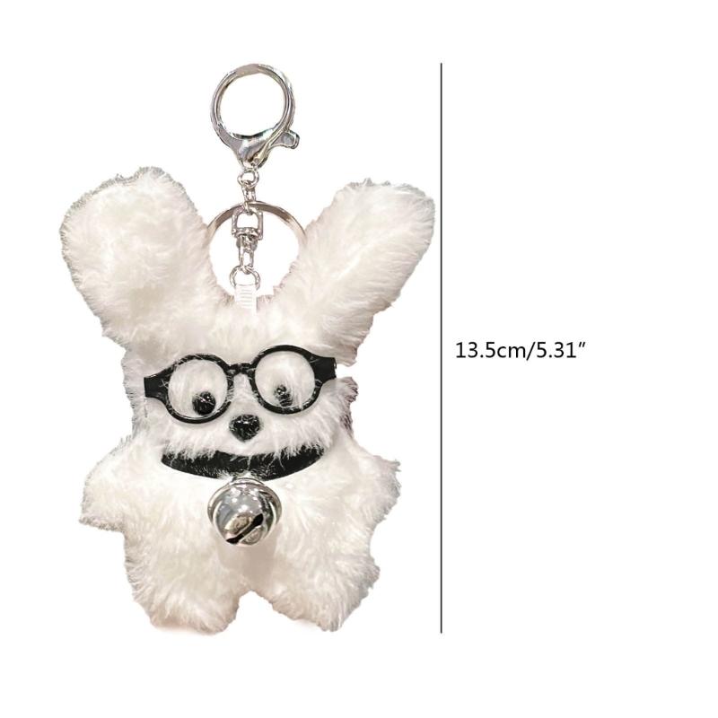 Cute Plush Glasses Puppy Keychain Car Keyring Party Gift Stuffed Dogs White Bag Pendant Ornament for Women Girl Teen