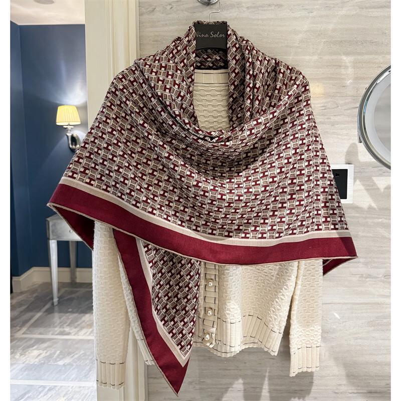 NINA SOLOR Letter Art Silk Wool Square Scarf