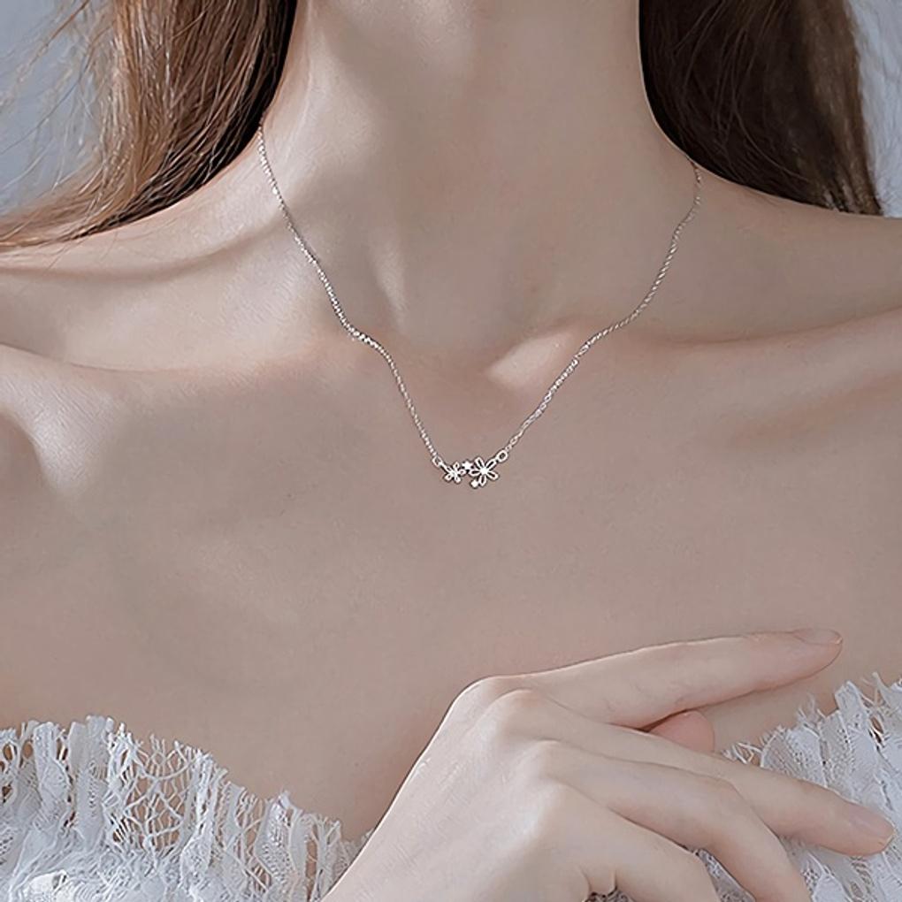 Women's Daily Twin Flower Silver Necklace (925 Silver) — купить товар онлайн с бесплатной доставкой по всему миру!