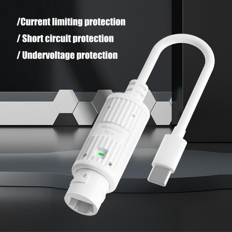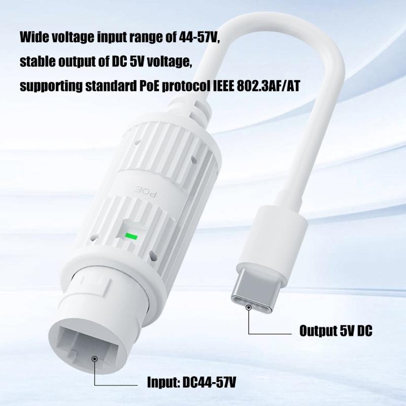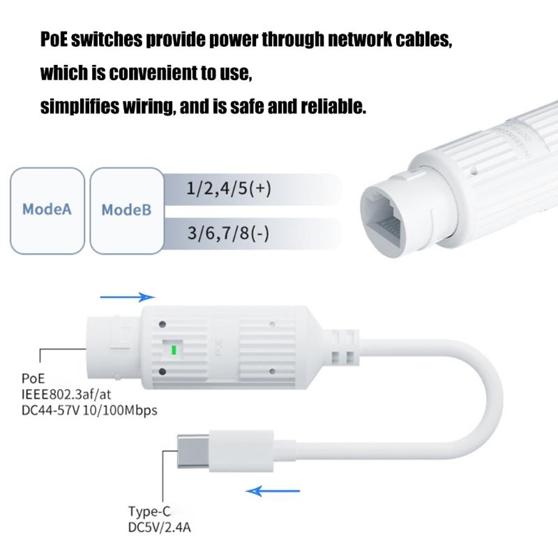 48V to 5V 2.4A POE Converter POE to Type C Adapter IEEE802.3af/at Standard 10/100Mbps Type C Power Over Ethernet Adapter