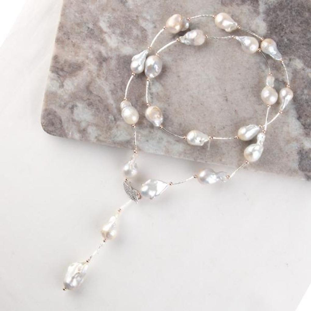 Atria's luxurious and stylish baroque pearl Y-shaped necklace, JONNEJJ0001WH
