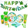Одноразовый набор посуды с тематикой зеленых динозавров для украшения сцены детского дня рождения