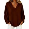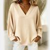 2025 Новый женский повседневный пуловер с V-образным вырезом и длинными рукавами, свободная однотонная разноцветная женская футболка — купить товар онлайн с бесплатной доставкой по всему миру!