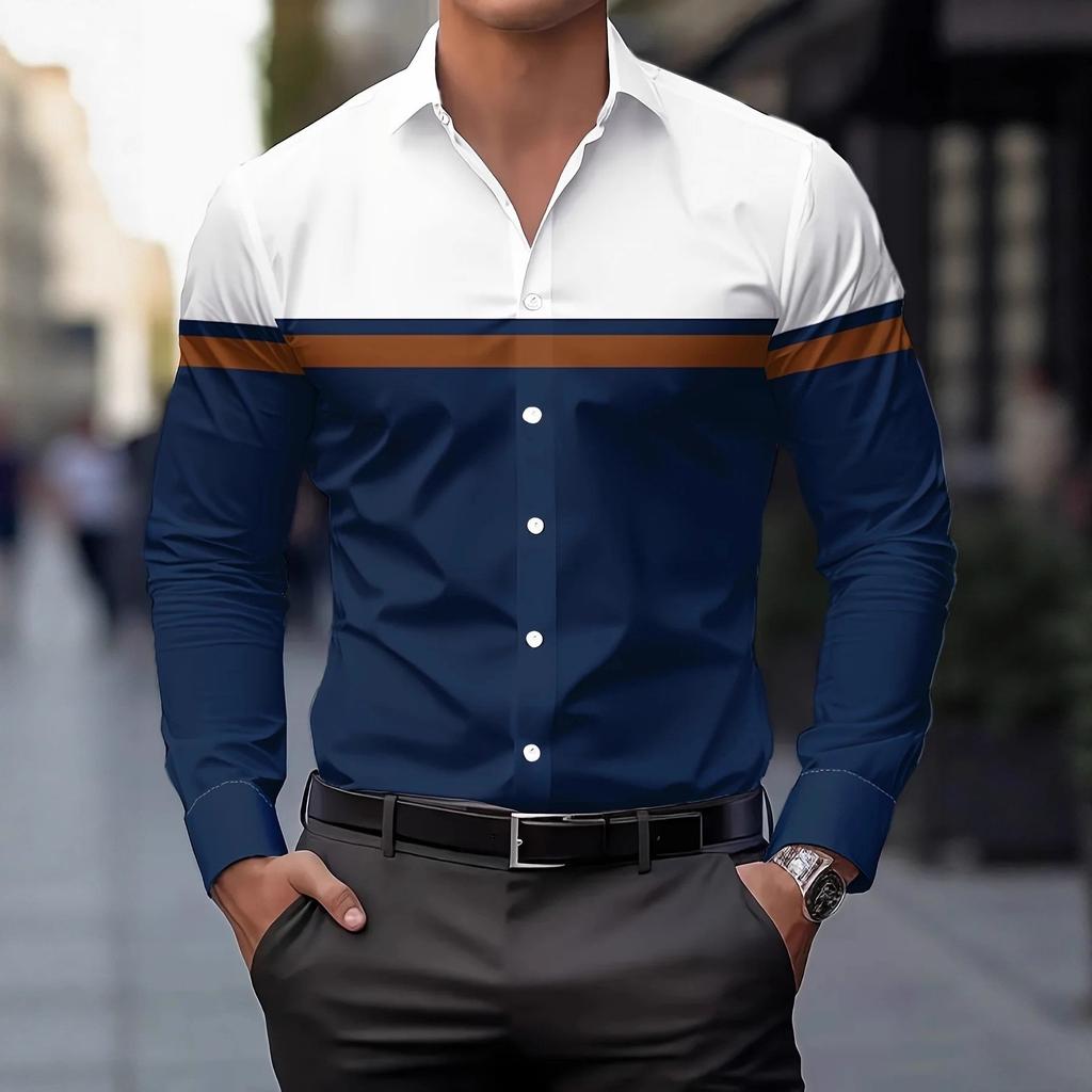 Мужская формальная рубашка с длинным рукавом, на пуговицах, с контрастным лацканом, напечатанная на 3D-принтере, повседневная