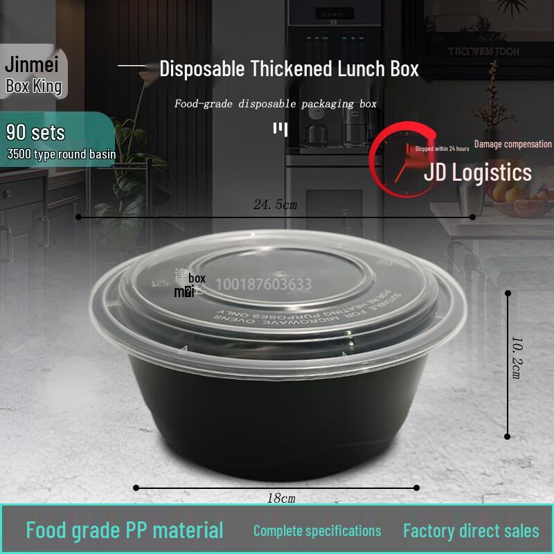 Disposable Round Takeaway Meal Box with High Lid, 3500ml, 90 Sets