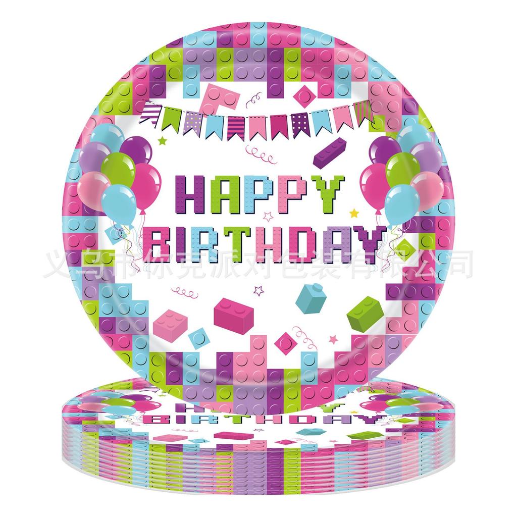 Colorful Building Block-themed Decoration Party Disposable Tableware Set, Children's Birthday Party Scene Decoration Supplies