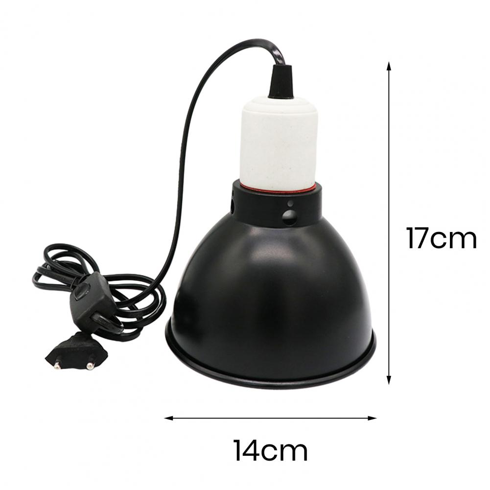 Представляем наш универсальный и эффективный светильник для рептилий, созданный для улучшения освещения.. Этот продукт подходит для всех видов UVB-ламп, тепловых ламп, керамических теплоизлучателей, инфракрасных и инфракрасных ламп и т. д.. Мы уделяем приоритетное внимание безопасности и функциональности, поэтому наш светильник для рептилий отличается хорошим рассеиванием тепла.. Высокоэффективный отражающий абажур оснащен вентиляционными отверстиями сверху, обеспечивающими оптимальное рассеивание тепла.. Это не только продлит срок службы ваших лампочек, но и обеспечит более безопасную среду для освещения.. Наш абажур совместим с керамическими цоколями ламп E27, способными выдерживать мощность до 300 Вт.. Это означает, что вы можете использовать различные лампы.. Долговечное черное порошковое покрытие снаружи и светоотражающее белое покрытие внутри не только добавляют элегантности, но также увеличивают блеск и долговечность вашей осветительной установки.. Если вы хотите улучшить внутреннее или наружное освещение, наш светильник для рептилий — идеальный выбор.. Его универсальность, долговечность и превосходное рассеивание тепла делают его пригодным для различных применений.. Испытайте улучшенные характеристики освещения с нашим светильником для рептилий уже сегодня!
