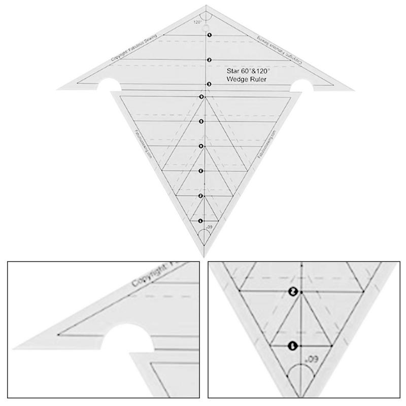 Швейная клиновидная линейка Ультратонкая акриловая измерительная линейка с 60 и 120 градусами Шаблон для пэчворка своими руками Прозрачный треугольник